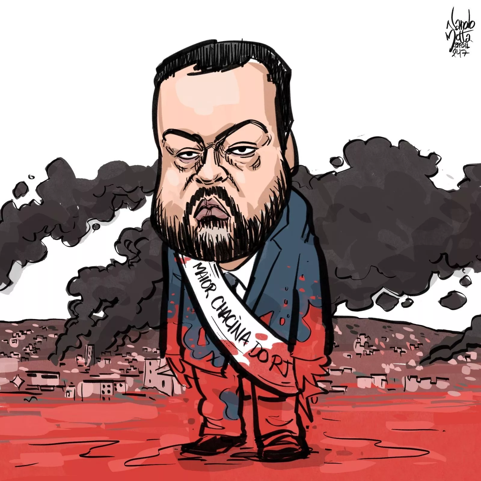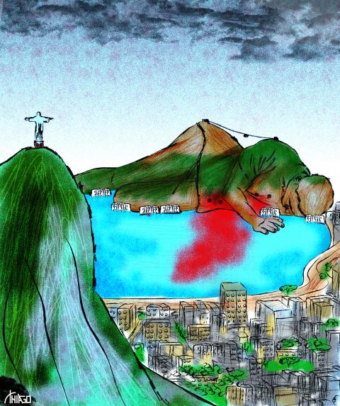 E, por algumas horas, os moradores dos condomínios de luxo do Rio de Janeiro talvez percebam – não o luto, mas o incômodo logístico – causado pela chacina de hoje. Mais de cem pessoas mortas nas favelas. Quatro policiais também. A tragédia é noticiada em letras minúsculas. Nas coberturas à beira–mar, a vida segue, porque o sangue derramado não mancha o piso de mármore.