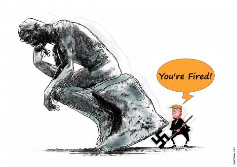 Uma das políticas mais visíveis e incisivas de Trump têm sido o programa de incentivo à ignorância e de aterrorizar imigrantes pobres e funcionários públicos, neste caso com objetivo de erradicar princípios republicanos. Nomeia negacionistas da razão, ignorantes e lunáticos para vários postos de seu ministério, além de acólitos que anunciam perseguição de servidores e cidadãos recalcitrantes, como se fossem polícia política.