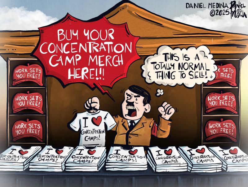Enquanto eu estava na academia, vi um homem na máquina ao meu lado vestindo uma camiseta do Alligator Alcatraz, e embora a maioria das coisas não me influencie mais politicamente, esta realmente influenciou. Aquela camiseta é um verdadeiro símbolo de um campo de concentração. As pessoas detidas lá não são criminosos que foram considerados culpados em um tribunal — são pessoas que Trump considerou indesejáveis. E agora que mais cinco locais foram aprovados em vários outros estados, a situação só está piorando. É realmente assustador.